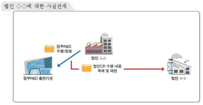 • 법인 ◇◇는 반도체 검사용 부품을 개발 중이나 해당 내용은 국가R&D 과제로 법인△△이 이미 개발 완료한 사항임