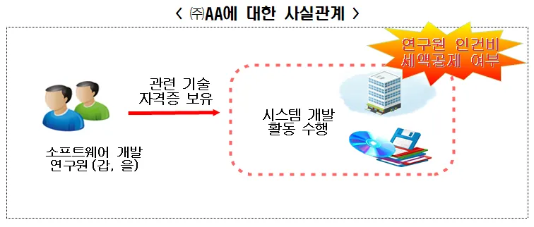 • ㈜AA는 소프트웨어를 연구개발하는 법인으로 연구전담부서를 등록후 새로운 연구과제를 수행하고 있음