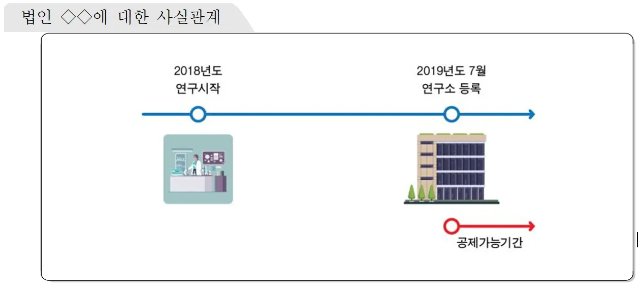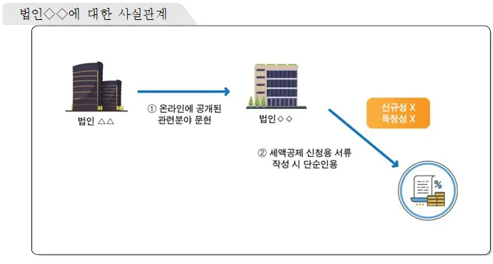 • 법인 ◇◇가 제출한 활동 내용은 세액공제 대상 연구개발 활동에 해당하나, 과거에 이미 진행 완료한 연구 활동들로 확인되어 당해 연도 연구・인력개발비 세액공제 대상으로 불인정