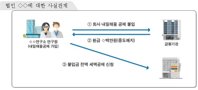 • 법인 ◇◇는 자사직원 갑에 대한 내일채움공제를 가입하고 기업 기여금을 중소벤처기업부에 납입함