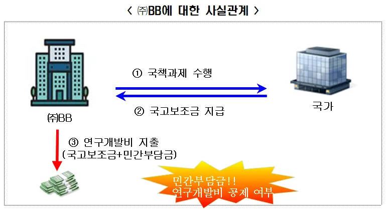 • ㈜BB는 정부기관과 협약에 의거 국책연구과제를 수행하고 국가로부터 연구개발 국고보조금 ○○억 원을 수령함