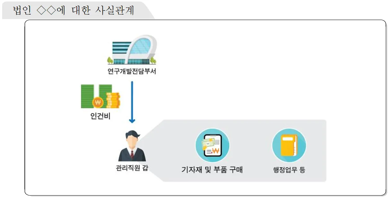 • 법인 ◇◇는 연구전담부서에 소속된 연구원들의 인건비를 연구・인력개발비 세액공제 대상으로 신청하면서 관리직원 갑의 인건비 ○백만원을 포함