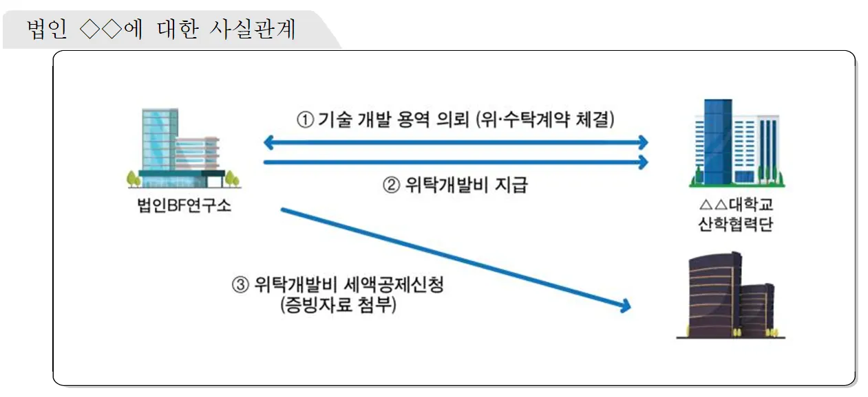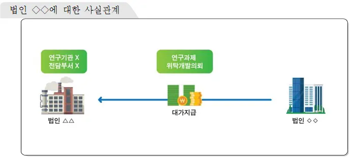 • 법인 ◇◇은 연구기관이나 전담부서로 등록되지 않은 법인 △△에 연구과제 개발을 위탁함