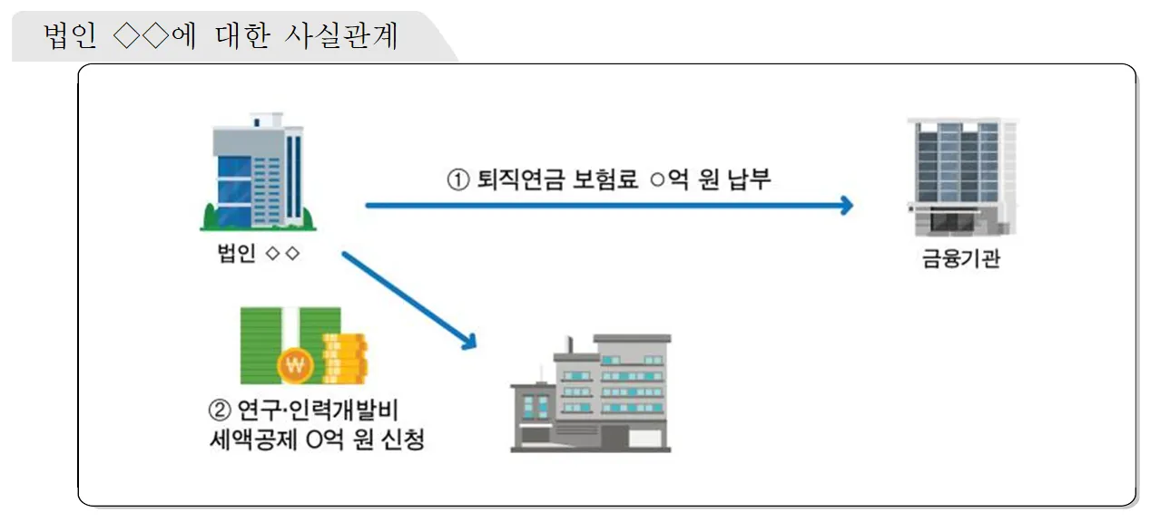 • 법인 ◇◇는 연구소 소속 전담연구원 ○명의 퇴직연금 보험료 ○억 원에 대해 연구・인력개발비 세액공제 신청