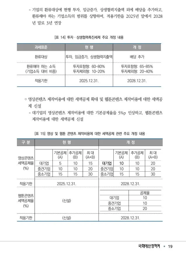 영상 및 웹툰 콘텐츠 제작비용 세액공제 확대