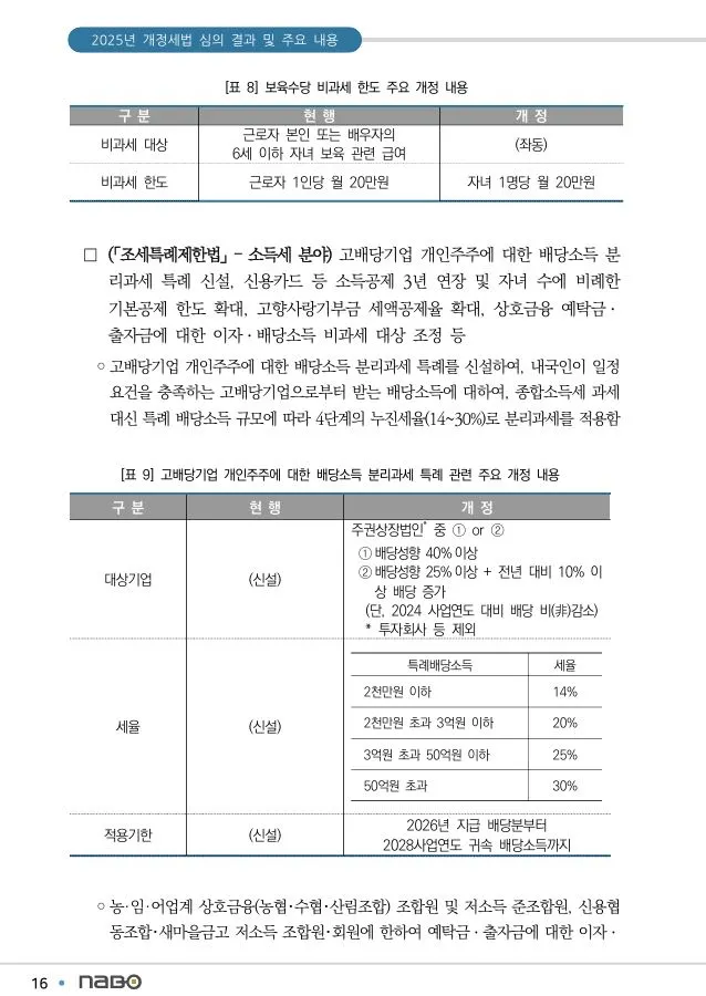 [보고서]2025년 개정세법 심의 결과 및 주요 내용 발간(국회예산정책처)